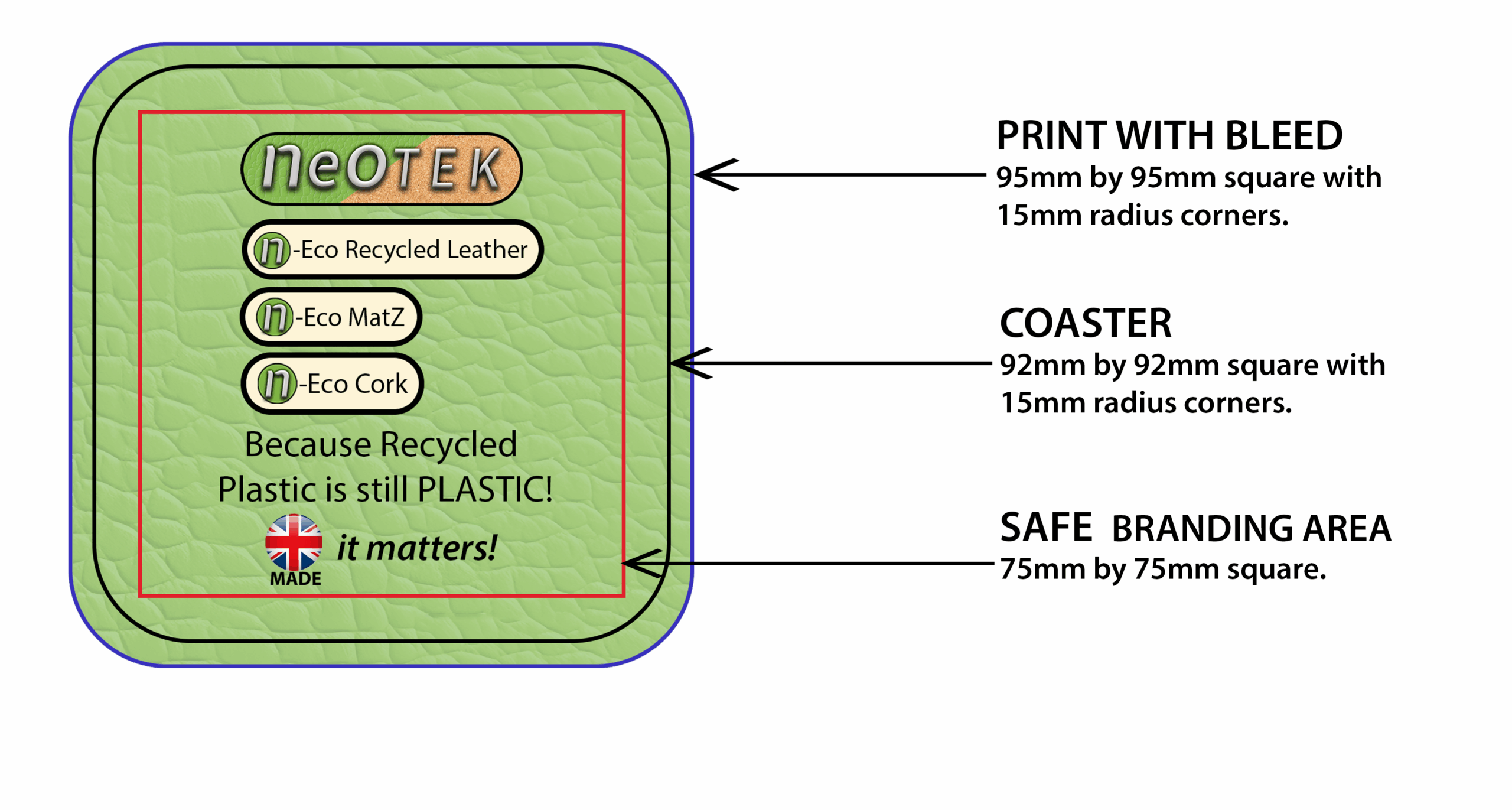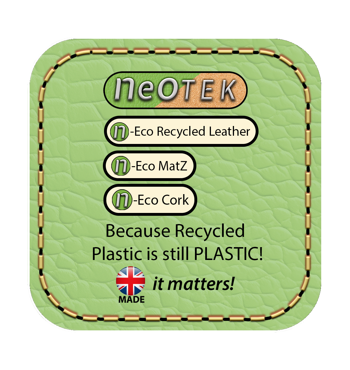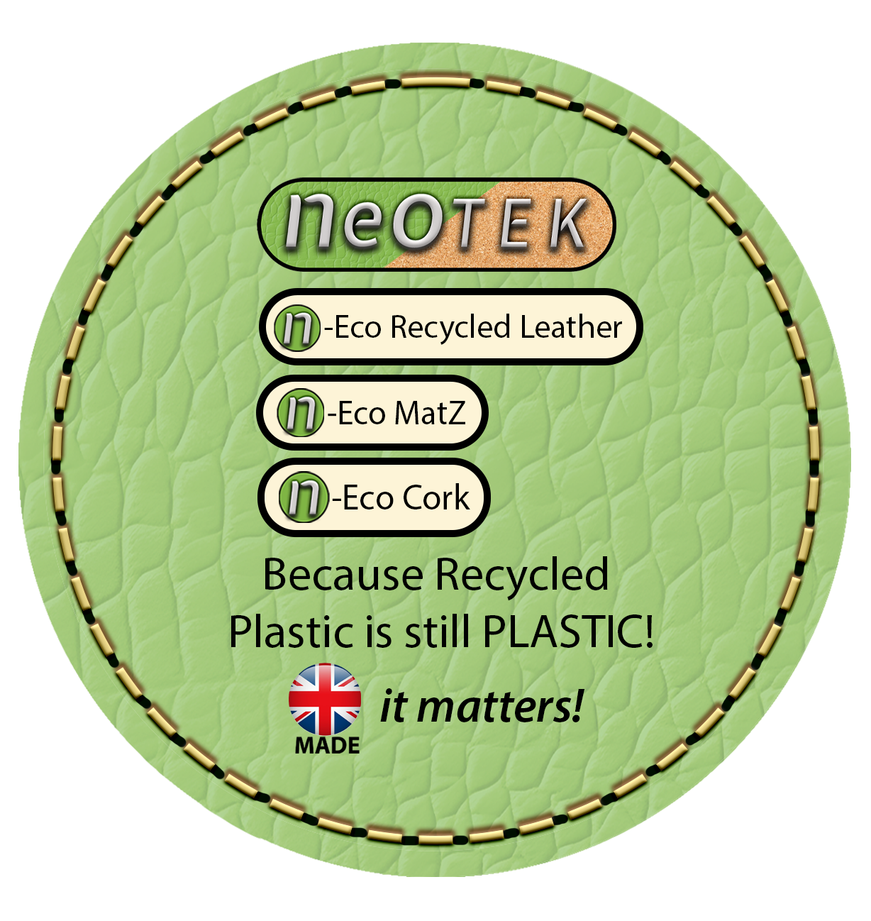 n-Eco® Recycled Leather combined with Natural Cork base and branded with Super Smooth Sub-Laminate full colour printing, Exquisitely decorated with a stitched border. With FREE Full Colour Printing your only customisation limitation is your imagination. Made using 66% recycled bovine leather fibres and 30% natural rubber latex, this innovative material combines premium aesthetics with environmental