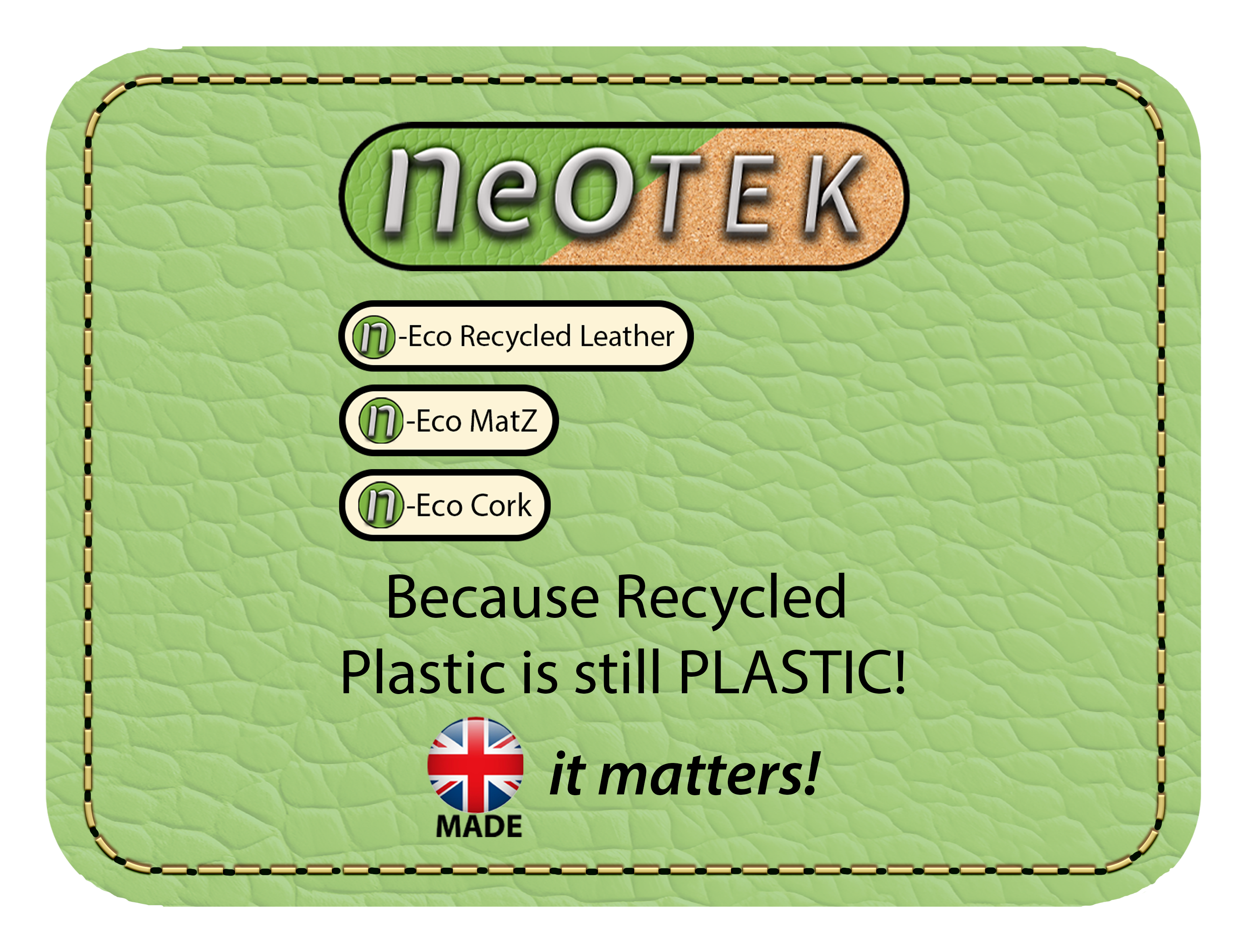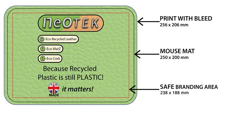 n-Eco® Recycled Leather combined with Natural Cork base and branded with Super Smooth Sub-Laminate full colour printing, Exquisitely decorated with a stitched border. With FREE Full Colour Printing your only customisation limitation is your imagination. Made using 66% recycled bovine leather fibres and 30% natural rubber latex, this innovative material combines premium aesthetics with environmental
